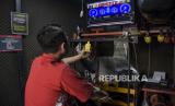 Teknisi mengukur intensitas cahaya (headlight tester) sepeda motor bbm yang dikonversi menjadi sepeda motor listrik di bengkel Bacip Moto Shop, Jalan Kebon Jati, Kota Bandung, Jawa Barat, Senin (3/7/2023). Bengkel Bacip Moto Shop binaan Bintang Racing Team tersebut merupakan salah satu bengkel resmi pemasangan, perawatan, pemeriksaan peralatan instalasi sistem penggerak motor listrik pada kendaraan bermotor dan mendapatkan lisensi Kementerian Perhubungan. Konversi motor tersebut dipatok dengan harga Rp9,5 juta dengan jarak tempuh rata-rata 40 kilometer. (FOTO : ABDAN SYAKURA/REPUBLIKA)