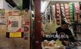 Stiker QRIS untuk transaksi pembayaran yang terpasang pada salah satu kios di Pasar Santa, Kebayoran Baru, Jakarta, Senin (3/7/2023). Bank Indonesia menaikan besaran merchant discount rate (MDR) bagi usaha mikro pengguna QRIS sebesar 0,3 persen yang berlaku pada Juli 2023. Sebelumnya tarif yang berlaku adalah 0 persen dan berakhir pada Juni 2023. (FOTO : Republika/Putra M. Akbar)