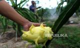 REPUBLIKA.CO.ID,BANYUWANGI -- Petani merawat tanaman buah naga kuning di Curahjati Purwoharjo, Banyuwangi, Jawa Timur, Senin (3/7/2023).