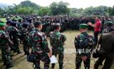 REPUBLIKA.CO.ID, JAYAPURA -- Sejumlah Prajurit TNI AD berbaris ketika mengikuti apel gelar pasukan pengamanan kedatangan Presiden Joko Widodo di Lapangan Den Zipur X, Waena, Kota Jayapura, Papua, Selasa (4/6/2023).