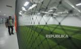 Petugas melihat ruang pemanasan untuk pesepak bola di Jakarta International Stadium (JIS), Tanjung Priok, Jakarta Utara, Selasa (4/7/2023). Pemerintah akan merenovasi JIS sesuai dengan standar FIFA agar bisa menjadi salah satu venue penyelenggaraan Piala Dunia U-17 2023. Renovasi yang meliputi akses masuk bus bagi pemain dan pejabat, rumput stadion dan berbagai aspek teknis lainnya tersebut ditargetkan rampung dalam tiga bulan. (FOTO : Republika/Putra M. Akbar)