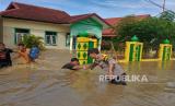 REPUBLIKA.CO.ID,KOLAKA -- Warga menerobos banjir di Desa Oko-oko, Kecamatan Polinggona, Kolaka, Sulawesi Tenggara, Selasa (4/7/2023).