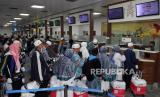 Jamaah haji asal embarkasi Jakarta Pondok Gede melakukan lapor diri keimigrasian setibanya di Terminal 2 Bandara Soekarno Hatta, Tangerang, Banten, Selasa (4/7/2023). Sebanyak 371 jamaah haji kloter empat embarkasi Jakarta Pondok Gede menjadi penerbangan perdana yang tiba di tanah air setelah melakukan rangkaian ibadah haji Arab Saudi. (FOTO : Antara/Muhammad Iqbal )