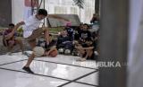 REPUBLIKA.CO.ID, BANDUNG. -- Penggiat olahraga mengikuti pertandingan sepakbola gaya bebas di Gymnasium Komplek SOR Si Jalak Harupat, Kabupaten Bandung, Jawa Barat, Rabu (5/7/2023).