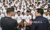 REPUBLIKA.CO.ID, JAKARTA -- Ketua Umum PSSI Erick Thohir (kanan) dan Direktur Teknik Dennis Wise (kiri) menyampaikan arahan saat meninjau program Garuda Select di Stadion Madya, Senayan, Jakarta, Kamis (6/7/2023).