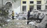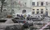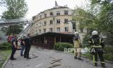 REPUBLIKA.CO.ID, LVIV -- Tim penyelamat dan polisi Ukraina bekerja di lokasi setelah roket menghantam sebuah blok apartemen di Lviv, Ukraina, Kamis (6/7/ 2023).