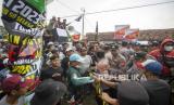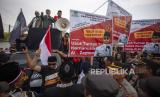 REPUBLIKA.CO.ID, INDRAMAYU -- Pengunjuk rasa dari Aliansi Santri dan Rakyat Indonesia (ASRI) melakukan aksi di depan Pondok Pesantren Al Zaytun, Indramayu, Jawa Barat, Kamis(6/7/2023).