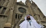 Delegasi negara anggota Organization Islamic Cooperation (OIC) Cultural Activity saat berkunjung ke Gereja Katedral, Jakarta, Jumat (7/7/2023). Kegiatan tersebut dalam rangka kunjungan kebudayaan delegasi OIC dengan mengunjungi beberapa tempat bersejarah di Jakarta seperti Masjid Istiqlal, Gereja Katedral, Terowongan Silaturahmi, dan Taman Mini Indonesia Indah (TMII) (FOTO : Republika/Thoudy Badai)