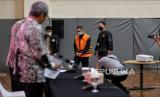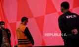 REPUBLIKA.CO.ID,JAKARTA -- Tersangka Mantan Kepala Kantor Pengawasan dan Pelayanan Bea dan Cukai Tipe Madya Pabean B Makasar, Andhi Pramono mengenakan rompi tahanan saat dihadirkan dalam konferensi pers pengumuman penahanan tersangka di Gedung Merah Putih KPK, Jakarta, Jumat (7/7/2023).