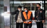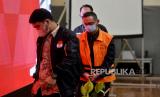 Tersangka Mantan Kepala Kantor Pengawasan dan Pelayanan Bea dan Cukai Tipe Madya Pabean B Makasar, Andhi Pramono menaiki mobil tahanan usai dihadirkan dalam konferensi pers pengumuman penahanan tersangka di Gedung Merah Putih KPK, Jakarta, Jumat (7/7/2023). KPK resmi melakukan penahanan terhadap tersangka Andhi Pramono terkait kasus dugaan tindak pidana korupsi penerimaan gratifikasi dan tindak pidana pencucian uang (TPPU) dalam pengurusan barang ekspor impor pada kantor pelayanan bea dan cukai. Andhi Pramono diduga menerima uang gratifikasi dalam kasus tersebut sebesar Rp28 miliar. Dalam kasus ini, KPK melakukan penahanan terhadap tersangka selama 20 hari pertama dari 7 Juli hingga 26 Juli guna kebutuhan proses penyidikan. (FOTO : Republika/Thoudy Badai)