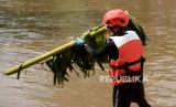 Aksi memungut sampah sungai ini di mulai mulai pukul 06.00 hingga 12.00 dan berhasil mengumpulkan sekitar 3 kubik sampah. (FOTO : Republika/Prayogi)