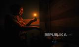 REPUBLIKA.CO.ID,JAMBI - - Seorang warga memasak dengan penerangan lampu minyak di rumahnya yang belum mendapatkan layanan listrik di Dusun Geragai, Desa Lagan Ulu, Tanjung Jabung Timur, Jambi, Ahad (9/7/2023).