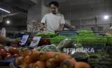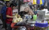 Pedagang melayani pembeli di salah satu kios di Pasar Kosambi, Kota Bandung, Jawa Barat, Senin (10/7/2023). Bank Indonesia memberlakukan biaya layanan QRIS bagi Penyedia Jasa Pembayaran (PJP) sebesar 0,3 persen dari yang sebelumnya sebesar 0 persen atau gratis. Dalam aturan yang berlaku sejak 1 Juli tersebut, pedagang tidak boleh membebankan balik ke konsumen atau pembeli. (FOTO : ABDAN SYAKURA/REPUBLIKA)
