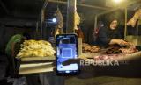 Warga melakukan transaksi digital menggunakan QRIS (Quick Response Code Indonesian Standard) saat membeli daging di Pasar Kosambi, Kota Bandung, Jawa Barat, Senin (10/7/2023). Bank Indonesia memberlakukan biaya layanan QRIS bagi Penyedia Jasa Pembayaran (PJP) sebesar 0,3 persen dari yang sebelumnya sebesar 0 persen atau gratis. Dalam aturan yang berlaku sejak 1 Juli tersebut, pedagang tidak boleh membebankan balik ke konsumen atau pembeli. (FOTO : ABDAN SYAKURA/REPUBLIKA)