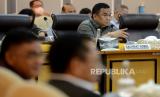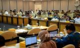 Suasana rapat konsultasi antara Pemerintah dengan Wakil Ketua DPR dan Pimpinan Komisi DPR di Ruang Pansus, Kompleks Parlemen, Senayan, Jakarta, Senin (10/7/2023). Rapat tersebut membahas evaluasi dan pelaksanaan pengelolahan batas wilayah negara dan kawasan perbatasan tahun 2023 - 2024. (FOTO : Republika/Prayogi)