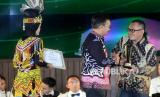 Kepala BKKBN Hasto Wardoyo memberikan piala KASAD Award kepada Wakil Pemimpin Redaksi Republika Nur Hasan Murtiaji di Mabes AD, Jakarta, Senin (10/7/2023). Republika Berhasil Memperoleh KASAD Award 2023 media nasional Ketergori Menekan Stunting. KASAD Award wujud merupakan apresiasi KASAD Jenderal TNI Dudung Abdurachman kepada pers nasional, pers daerah dan pers kampus yang turut merawat kebangsaan melalui pemberitaan di platform digital. (FOTO : Republika/Prayogi)