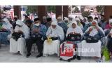 REPUBLIKA.CO.ID,SEMARANG -- Sejumlah jamaah haji asal Kabupaten Semarang kloter 16 saat tiba di pendopo rumah dinas bupati semarang, di Ungaran, Kabupaten Semarang, Selasa (11/7/2023) pagi.