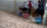 REPUBLIKA.CO.ID,TERNATE -- Pekerja mengumpulkan biji pala kering yang akan disortir di salah satu gudang rempah di Kota Ternate, Maluku Utara, Selasa (11/7/2023).