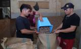 Sejumlah pekerja mengumpulkan biji pala kering yang akan disortir di salah satu gudang rempah di Kota Ternate, Maluku Utara, Selasa (11/7/2023). Pala kering yang sebagian untuk diekspor ke sejumlah negara di Asia tersebut merupakan salah satu komoditas rempah andalan di Maluku Utara yang dijual Rp90 ribu per kilogram di tingkat pengepul selanjutnya diolah menjadi obat-obatan dan bumbu masakan. (FOTO : Antara/Andri Saputra)