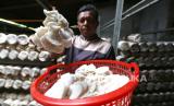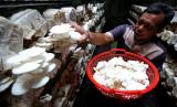 Petani memanen jamur tiram hasil budi daya dengan pola tanam baglog di Desa Lam Ceu, Aceh Besar, Aceh, Selasa (11/7/2023). Menurut petani budi daya jamur tiram dengan pola tanam baglog yang berbahan baku serbuk gergaji, dedak, gips, kapur dan tepung jagung itu dapat menghasilkan jamur tiram berkualitas unggul dengan harga jual Rp45 ribu hingga Rp60 ribu perkilogram. (FOTO : Antara/Irwansyah Putra)