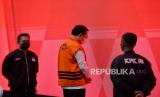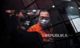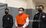 KPK resmi menahan Sekretaris Mahkamah Agung, Hasbi Hasan (rompi oranye) pada Rabu (12/7/2023). Dia ditahan terkait dugaan suap penanganan perkara di MA. (FOTO : Republika/Flori Sidebang)
