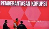 REPUBLIKA.CO.ID, JAKARTA. -- Tersangka sekretaris Mahkamah Agung (MA) Hasbi Hasan mengenakan pakaian tahanan usai dihadirkan dalam konferensi pers pengumuman penahanan tersangka di Gedung Merah Putih KPK, Jakarta, Rabu (12/7/2023).