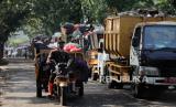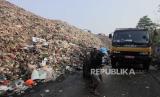 Sejumlah truk sampah mengantre untuk membuang sampah di TPA Cipayung, Depok, Jawa Barat, Kamis (13/7/2023). TPA Cipayung mengalami kelebihan kapasitas sehingga membuat sampah menggunung. Diperkirakan setiap harinya terdapat sekitar 900 hingga 1.000 ton sampah masuk ke TPA Cipayung. Penuhnya TPA Cipayung membuat truk pembawa sampah harus menunggu hingga lebih dari delapan jam untuk membuang sampah sehingga membuat jadwal pengangkutan sampah di rumah-rumah warga terhambat. (FOTO : Republika/Putra M. Akbar)