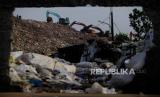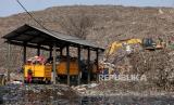 Sejumlah alat berat merapikan sampah yang menggunung di TPA Cipayung, Depok, Jawa Barat, Kamis (13/7/2023). TPA Cipayung mengalami kelebihan kapasitas sehingga membuat sampah menggunung. Diperkirakan setiap harinya terdapat sekitar 900 hingga 1.000 ton sampah masuk ke TPA Cipayung. Penuhnya TPA Cipayung membuat truk pembawa sampah harus menunggu hingga lebih dari delapan jam untuk membuang sampah sehingga membuat jadwal pengangkutan sampah di rumah-rumah warga terhambat. (FOTO : Republika/Putra M. Akbar)