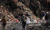 Pemulung mencari sampah di TPA Cipayung, Depok, Jawa Barat, Kamis (13/7/2023). TPA Cipayung mengalami kelebihan kapasitas sehingga membuat sampah menggunung. Diperkirakan setiap harinya terdapat sekitar 900 hingga 1.000 ton sampah masuk ke TPA Cipayung. Penuhnya TPA Cipayung membuat truk pembawa sampah harus menunggu hingga lebih dari delapan jam untuk membuang sampah sehingga membuat jadwal pengangkutan sampah di rumah-rumah warga terhambat. (FOTO : Republika/Putra M. Akbar)