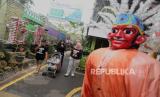 REPUBLIKA.CO.ID, KLENDER -- Anak-anak berjalan membawa buku di dekat mural di Kampung Literasi, Klender, Jakarta Timur, Kamis (13/7/2023).