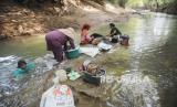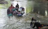 REPUBLIKA.CO.ID, CIBARUSAH -- Warga mencuci pakaan di aliran kali Cihoe, Cibarusah, Kabupaten Bekasi, Jawa Barat, Kamis (13/7/2023).
