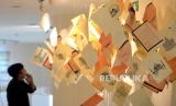 Mahasiswa melihat instalasi seni tentang manuskrip saat pameran manuskrip Islam di Perpustakaan Universitas Islam Indonesia, Yogyakarta, Jumat (14/7/2023). Pameran yang digagas oleh Lembaga Kebudayaan Embun Kalimasasa Yayasan Badan Wakaf UII ini dalam rangka Milad ke-80 UII. Berbagai manuskrip berbagai judul dari abad je-19 hingga abad ke-20 ditampilkan untuk mengingatkan pengunjung agar menjaga budaya literasi. Manuskrip-manuskrip tersebut bercerita tentang pengalaman hidup masyarakat masa lampau dan bahkan menjadi katalis yang mendorong perubahan zaman. (FOTO : Republika/Wihdan Hidayat)