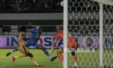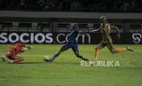 Penyerang Persib Bandung David Da Silva (tengah) berusaha menendang bola ke gawang Dewa United FC pada pertandingan lanjutan BRI Liga 1 di Stadion Gelora Bandung Lautan Api (GBLA), Kota Bandung, Jawa Barat, Jumat (14/7/2023). Dalam pertandingan tersebut Persib Bandung imbang melawan Dewa United FC dengan skor akhir 2-2. (FOTO : ABDAN SYAKURA/REPUBLIKA)