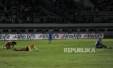 Penyerang Persib Bandung Ciro Henrique Alves Ferreira E Silva terjatuh pada pertandingan lanjutan BRI Liga 1 di Stadion Gelora Bandung Lautan Api (GBLA), Kota Bandung, Jawa Barat, Jumat (14/7/2023). Dalam pertandingan tersebut Persib Bandung imbang melawan Dewa United FC dengan skor akhir 2-2. (FOTO : ABDAN SYAKURA/REPUBLIKA)