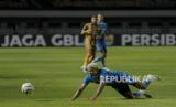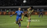 Penyerang Persib Bandung David Da Silva (kiri) berebut bola dengan gelandang Dewa United FC Ahmad Rusadi (kanan) pada pertandingan lanjutan BRI Liga 1 di Stadion Gelora Bandung Lautan Api (GBLA), Kota Bandung, Jawa Barat, Jumat (14/7/2023). Dalam pertandingan tersebut Persib Bandung imbang melawan Dewa United FC dengan skor akhir 2-2. (FOTO : ABDAN SYAKURA/REPUBLIKA)