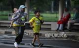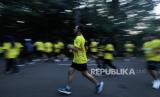 Sejumlah peserta berlari saat BNI UI Half Marathon 2023 di Kampus Universitas Indonesia, Depok, Jawa Barat, Ahad (16/7/2023). BNI UI Half Marathon 2023 bertema The Greenest and Most Sterile Route Half Marathon yang terbagi dari tiga kategori jarak 5K, 10K dan 21K tersebut diikuti oleh 6.000 peserta. Kegiatan tahunan yang diikuti oleh komunitas lari, atlet Ikatan Alumni Universitas Indonesia dan masyarakat Umum dari daerah Jabodetabek tersebut menyajikan pengalaman berlari di kawasan Kampus Universitas Indonesia yang dikelilingi hutan dan bebas dari kendaraan. (FOTO : Republika/Putra M. Akbar)