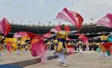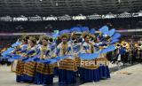 Pentas parade budaya dalam acara Apel Siaga Perubahan Partai Nasdem di Stadion Utama Gelora Bung Karno (SUGBK), Senayan, Jakarta, Ahad (16/7/2023). Apel siaga tersebut dilakukan dalam rangka konsolidasi kader sekaligus menguatkan Koalisi Perubahan untuk Persatuan (KPP) dalam menghadapi Pilpres 2024 mendatang. Acara tersebut dihadiri oleh Ketua Umum Partai Nasdem Surya Paloh, Bakal Calon Presiden Koalisi Perubahan untuk Persatuan (KPP) Anies Baswedan dan petinggi partai koalisi lainnya yakni Ketua Umum Partai Demokrat Agus Harimurti Yudhoyono dan Presiden PKS Ahmad Syaikhu bersama jajarannya. (FOTO : Republika/Thoudy Badai)