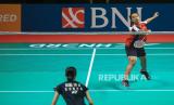 REPUBLIKA.CO.ID, Pebulu tangkis Indonesia Mutiara Ayu Puspitasari melesatkan kok ke arah pebulu tangkis Korea Selatan Kim Min Ji (bawah) saat final tunggal putri BNI Badminton Asia Junior Championships 2023 di GOR Among Raga, Yogyakarta, Ahad (16/7/2023).