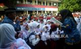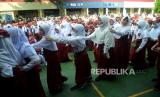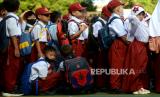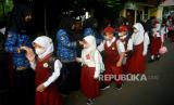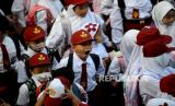 REPUBLIKA.CO.ID, DEPOK -- Sejumlah siswa berbaris saat hari pertama masuk sekolah di SD Negeri Anyelir 1 Depok, Jawa Barat, Senin (17/7/2023).