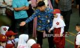Sejumlah siswa bersalaman dengan guru saat hari pertama masuk sekolah di SD Negeri Anyelir 1 Depok , Jawa Barat, senin (17/7/2023). Hari pertama masuk sekolah tahun ajaran 2023/2024 itu diawali dengan pelaksanaan Masa Pengenalan Lingkungan Sekolah (MPLS). Di Sekolah tersebut MPLS untuk Kelas 1 dilakukan selama 2 minggu dan untuk kelas 2 hingga kelas 6 dilakukan selama 3 hari. Kegiatan MPLS dibuat semenarik mungkin dan menyenangkan sehingga siswa diharapkan bersemangat untuk belajar setelah mengenali dan memahami lingkungan belajarnya. (FOTO : Republika/Prayogi)