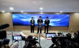 Menteri Komunikasi dan Informatika (Menkominfo) Budi Arie Setiadi (tengah) didampingi Wakil Menteri Komunikasi dan Informatika (Wamenkominfo) Nezar Patria (kanan) dan Sekretaris Jenderal Kementerian Kominfo Mira Tayyiba (kiri) menyampaikan keterangan pers usai serah terima jabatan di Gedung Kementerian Kominfo, Jakarta, Senin (17/7/2023). Budi Arie Setiadi resmi menjabat sebagai Menteri Kominfo menggantikan Plt. Kominfo Mahfud MD. Sebelumnya Presiden Joko Widodo melantik Budi Arie sebagai Menkominfo didampingi Nezar Patria sebagai Wamenkominfo di Istana Negara pada Senin (17/7) pagi. Budi Arie menjabat sebagai Menkominfo menggantikan menteri sebelumnya Johnny G Plate yang terjerat kasus dugaan korupsi penyediaan Infrastruktur base transceiver station (BTS) 4G. (FOTO : Republika/Thoudy Badai)