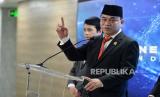 Menteri Komunikasi dan Informatika (Menkominfo) Budi Arie Setiadi menyampaikan keterangan pers usai serah terima jabatan di Gedung Kementerian Kominfo, Jakarta, Senin (17/7/2023). Budi Arie Setiadi resmi menjabat sebagai Menteri Kominfo menggantikan Plt. Kominfo Mahfud MD. Sebelumnya Presiden Joko Widodo melantik Budi Arie sebagai Menkominfo didampingi Nezar Patria sebagai Wamenkominfo di Istana Negara pada Senin (17/7) pagi. Budi Arie menjabat sebagai Menkominfo menggantikan menteri sebelumnya Johnny G Plate yang terjerat kasus dugaan korupsi penyediaan Infrastruktur base transceiver station (BTS) 4G. (FOTO : Republika/Thoudy Badai)