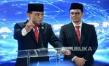 REPUBLIKA.CO.ID, Menteri Komunikasi dan Informatika (Menkominfo) Budi Arie Setiadi (kiri) didampingi Wakil Menteri Komunikasi dan Informatika (Wamenkominfo) Nezar Patria (kanan) menyampaikan keterangan pers usai serah terima jabatan di Gedung Kementerian Kominfo, Jakarta, Senin (17/7/2023).