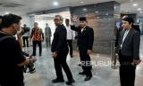 Plt Menteri Komunikasi dan Informatika (Menkominfo) Mahfud MD tiba untuk melakukan serah terima jabatan kepada Menkominfo yang baru Budi Arie Setiadi didampingi Wamenkominfo Nezar Patria di Gedung Kementerian Kominfo, Jakarta, Senin (17/7/2023). Budi Arie Setiadi resmi menjabat sebagai Menteri Kominfo menggantikan Plt. Kominfo Mahfud MD. Sebelumnya Presiden Joko Widodo melantik Budi Arie sebagai Menkominfo didampingi Nezar Patria sebagai Wamenkominfo di Istana Negara pada Senin (17/7) pagi. Budi Arie menjabat sebagai Menkominfo menggantikan menteri sebelumnya Johnny G Plate yang terjerat kasus dugaan korupsi penyediaan Infrastruktur base transceiver station (BTS) 4G. (FOTO : Republika/Thoudy Badai)