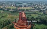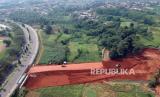Foto udara pembangunan akses jalan baru menuju Stadion Pakansari, Kabupaten Bogor, Jawa Barat, Senin (17/7/2023). Pemerintah Kabupaten Bogor membangun jalan baru menuju Stadion Pakansari, Cibinong, tepatnya dari sebelah timur stadion yang nantinya akan terhubung ke jalan raya Jakarta-Bogor. Wijaya/nym. (FOTO : ANTARA FOTO/Yulius Satria Wijaya)