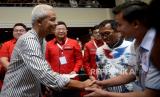 REPUBLIKA.CO.ID,JAKARTA -- Bakal calon presiden Ganjar Pranowo memberikan pengarahan dalam acara pelatihan juru kampanye Ganjar Pranowo di Jakarta, Senin (17/7/2023).