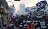 REPUBLIKA.CO.ID,BANDUNG -- Suporter atau bobotoh Viking Persib Club (VPC) merayakan ulang tahun yang ke-30 dengan melakukan konvoi mengelilingi kota Bandung, Senin (17/7/2023).