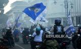 Suporter atau bobotoh Viking Persib Club (VPC) merayakan ulang tahun yang ke-30 dengan melakukan konvoi mengelilingi kota Bandung, Senin (17/7/2023). Bobotoh Persib terbesar ini berharap di usianya yang sudah mencapai 30 tahun, bisa terus eksis mendukung Persib dan memberi manfaat bagi masyarakat banyak. (FOTO : Edi Yusuf/Republika)