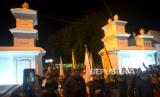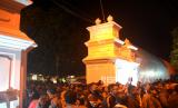 Warga melintas pojok beteng Utara saat tradisi mubeng beteng di Keraton Yogyakarta, Kamis (20/7/2023) dini hari. Tradisi mubeng beteng Keraton Yogyakarta kembali diadakan usai vakum selama tiga tahun imbas pandemi covid 19. Ribuan warga mengikuti tradisi Lampah Budaya Tapa Bisu Mubeng Beteng setiap malam 1 Suro sebagai bentuk instrospeksi diri. Selama mubeng beteng peserta tidak boleh berbicara satu sama lain. (FOTO : Republika/Wihdan Hidayat)