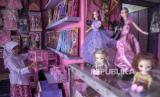 Seorang anak memainkan boneka di dalam rumah boneka barbie di Krisna Shop, Jalan Soekarno Hatta, Kota Bandung, Jawa Barat, Kamis (20/7/2023). Berbagai jenis rumah boneka barbie yang dijual dengan harga Rp200 ribu hingga Rp1,6 juta tergantung ukuran dan tingkat kesulitan tersebut telah dipasarkan ke berbagai daerah di Indonesia serta luar negeri. (FOTO : ABDAN SYAKURA/REPUBLIKA)